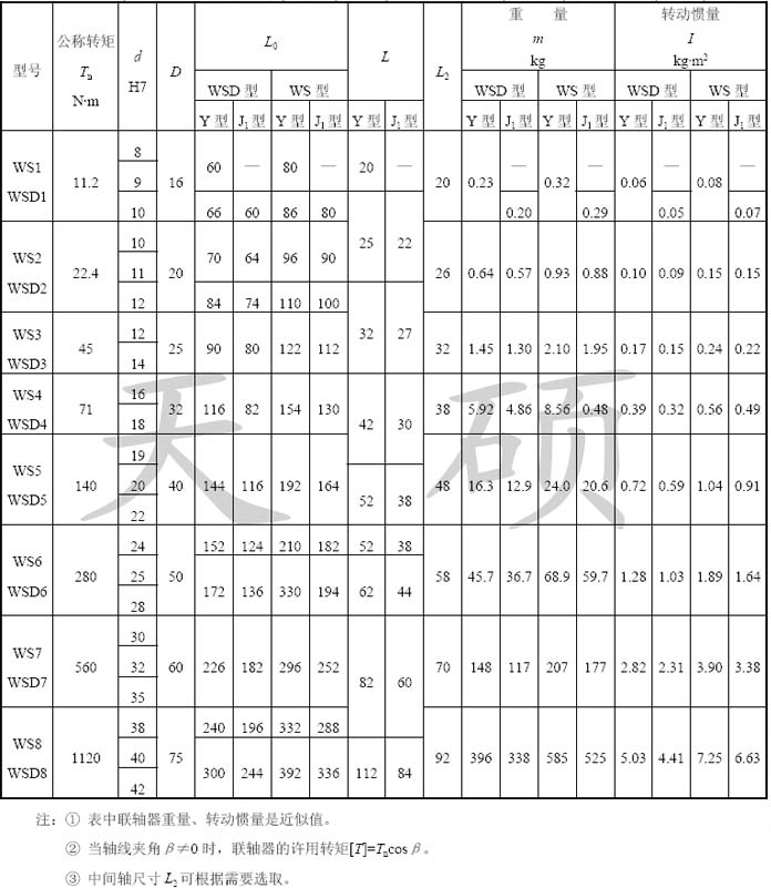 WS_WSD型小型十字軸萬向聯(lián)軸器基本參數(shù)和主要尺寸