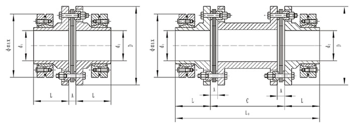 ZDJM(ZSJM)型鎖緊盤式單(雙)型彈性膜片聯軸器的主要尺寸和基本參數