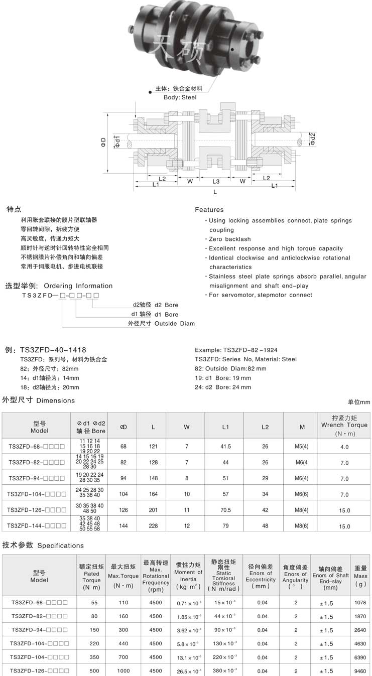 TS3ZFD多節(jié)脹套法蘭膜片聯(lián)軸器產(chǎn)品介紹:
