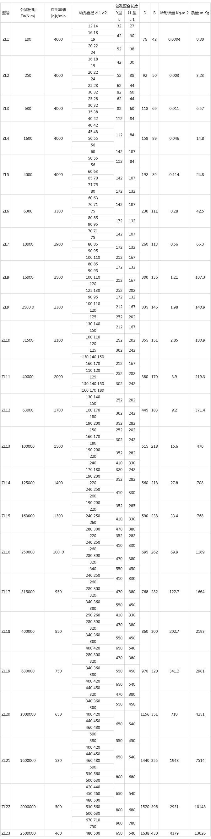 ZL型彈性柱銷齒式聯(lián)軸器基本參數(shù)和主要尺寸