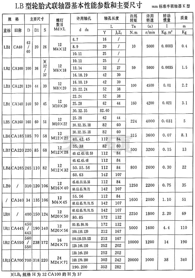 LB輪胎聯軸器是一種高彈性聯軸器,具有良好的減震緩沖和優越的軸間偏移補償性能,工作溫度—20~80攝氏度,轉遞轉矩10~20000N.M,適于潮濕、多塵、有沖擊、振動、正反轉多變和起動頻繁的工作條件,并全拆裝方便,不需潤滑、耐久可靠。